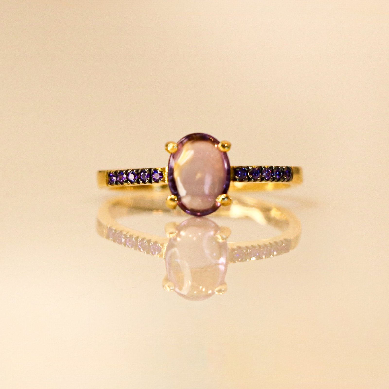 Poétique et raffinée, la bague Artémis, ornée d’une tourmaline ovale lilas et de petits zircons violets, habillera vos tenues du quotidien comme vos plus belles tenues de soirée.