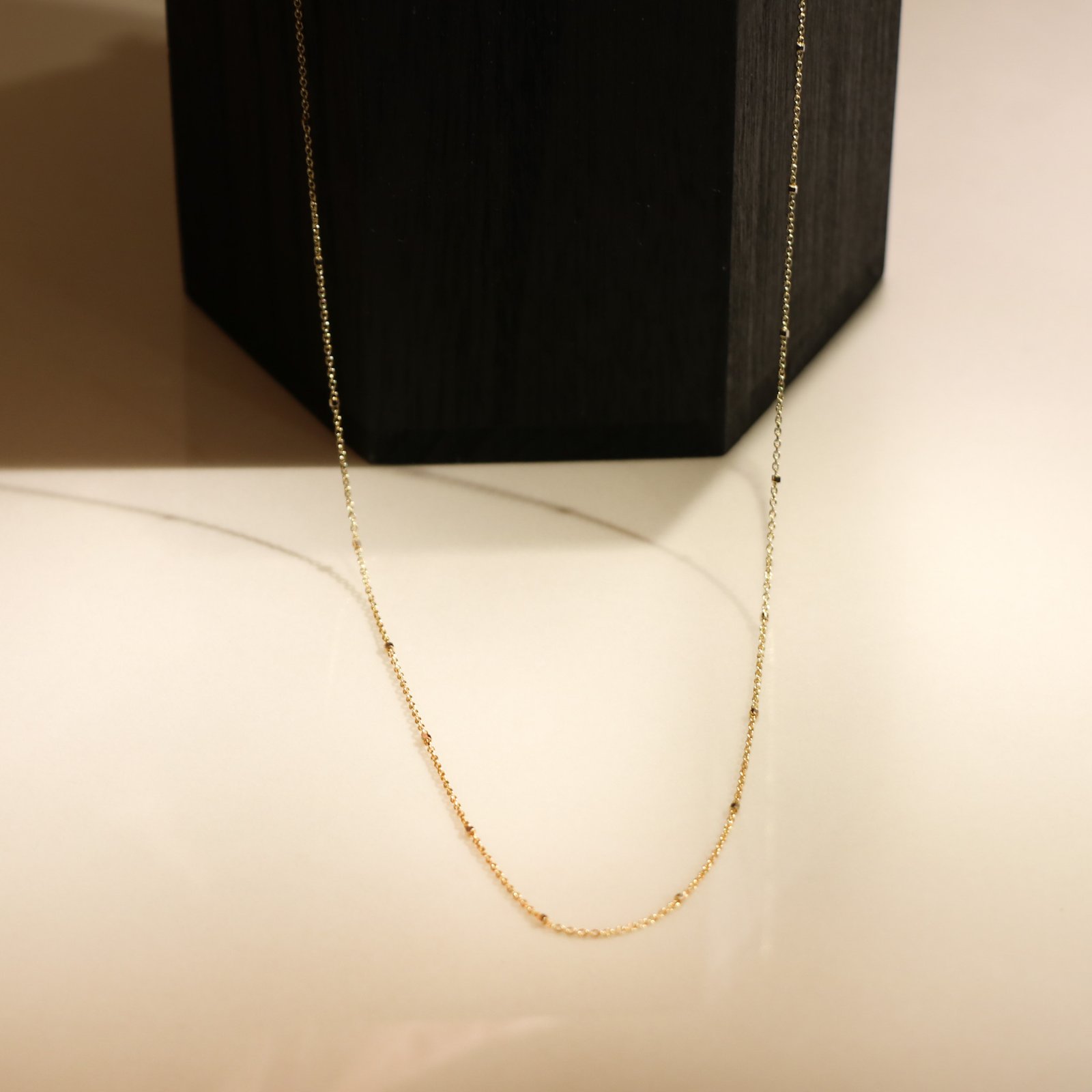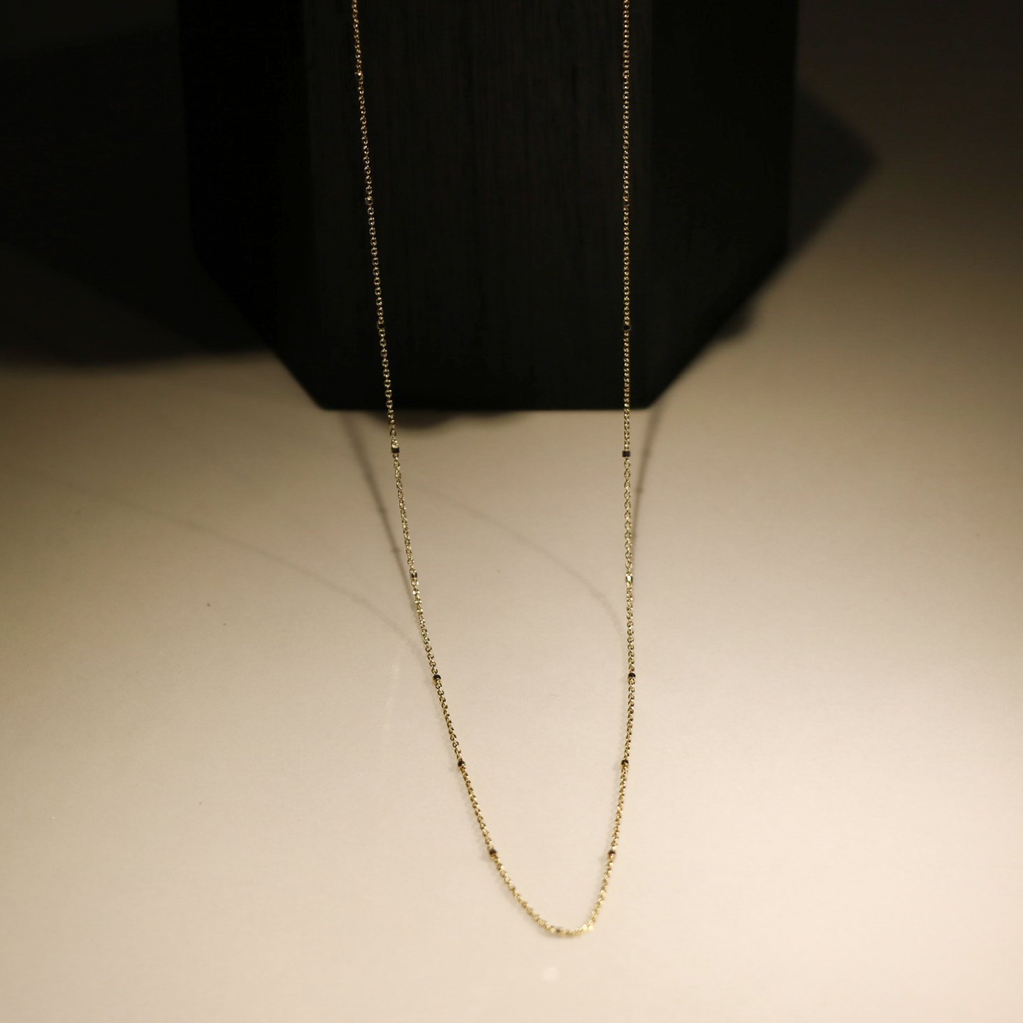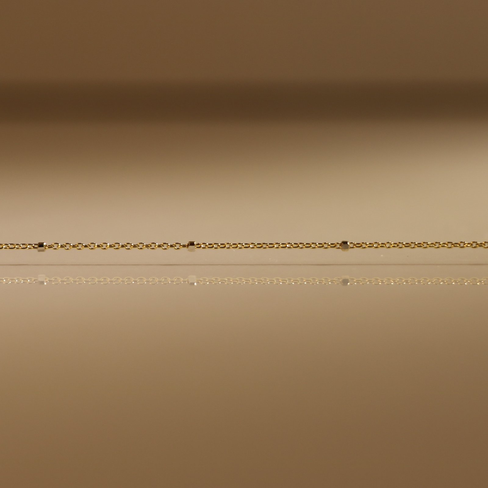 Élégante et lumineuse, cette chaîne maille forçat est parsemée de petits cubes en or blanc lisses et scintillants qui lui confèrent une touche de modernité originale.