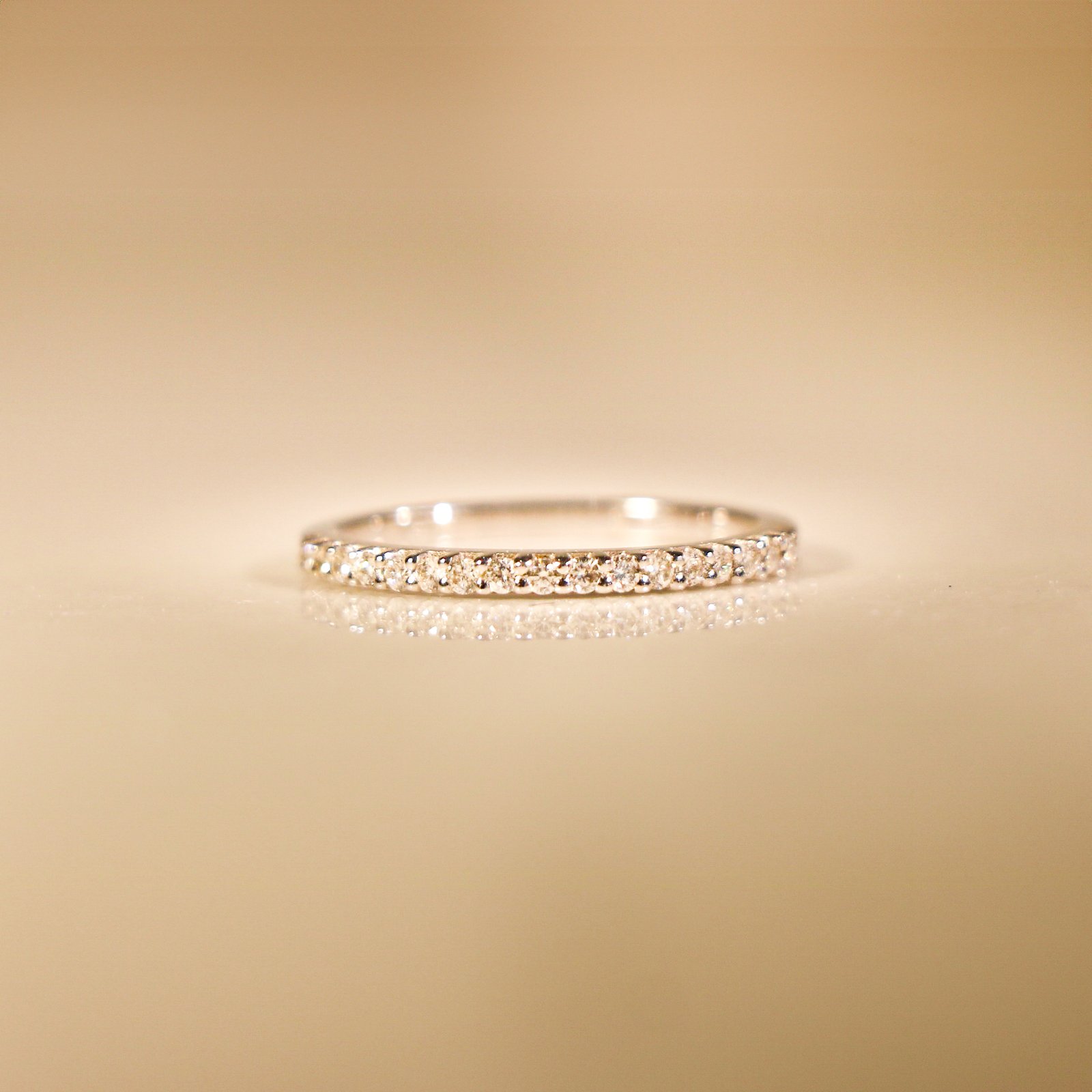 Cette bague sertie de diamants blancs vous séduira par son émouvante simplicité. Qu’elle scelle un engagement ou qu’elle soit un cadeau pour vous-même, elle réhaussera vos tenues de jour comme de nuit.