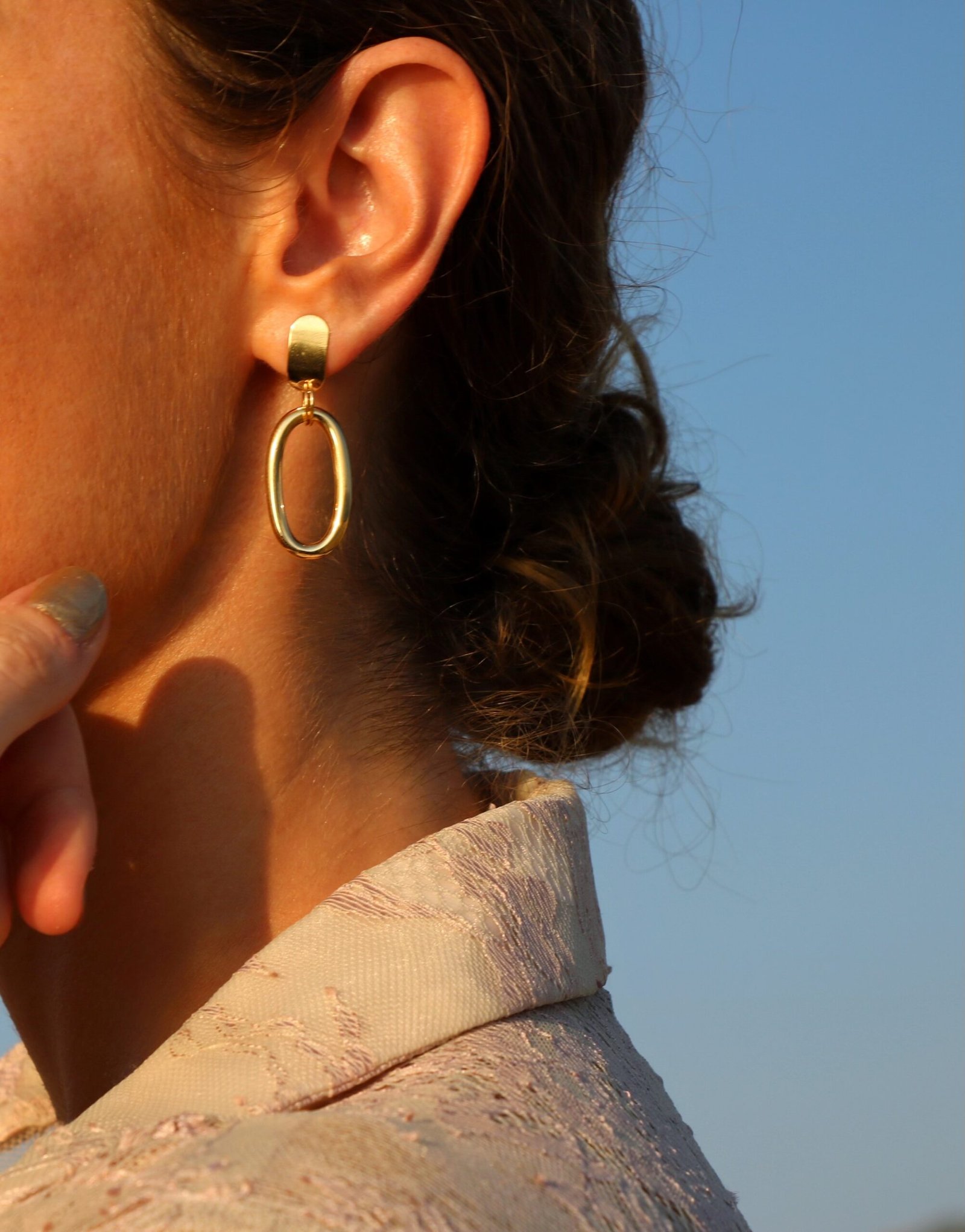 Les boucles Mina séduisent par leur design aux courbes sensuelles. Plutôt épaisses, elles captent la lumière avec intensité. Féminines et raffinées, elles peuvent se porter aussi bien au quotidien que pour terminer vos looks de soirées.