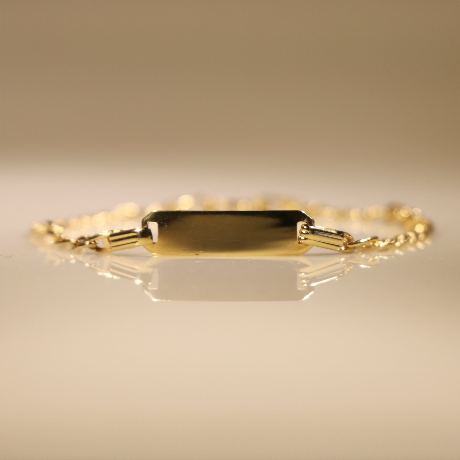 Chic et moderne, cette gourmette en or jaune 18 carats 750 ‰ se compose de maillons en grains de café aplatis, offrant délicatesse et originalité, reliée à une plaque lisse et soutenue par une attache au design coquillage. Une pièce moderne qui se personnalise par une gravure unique à votre image.