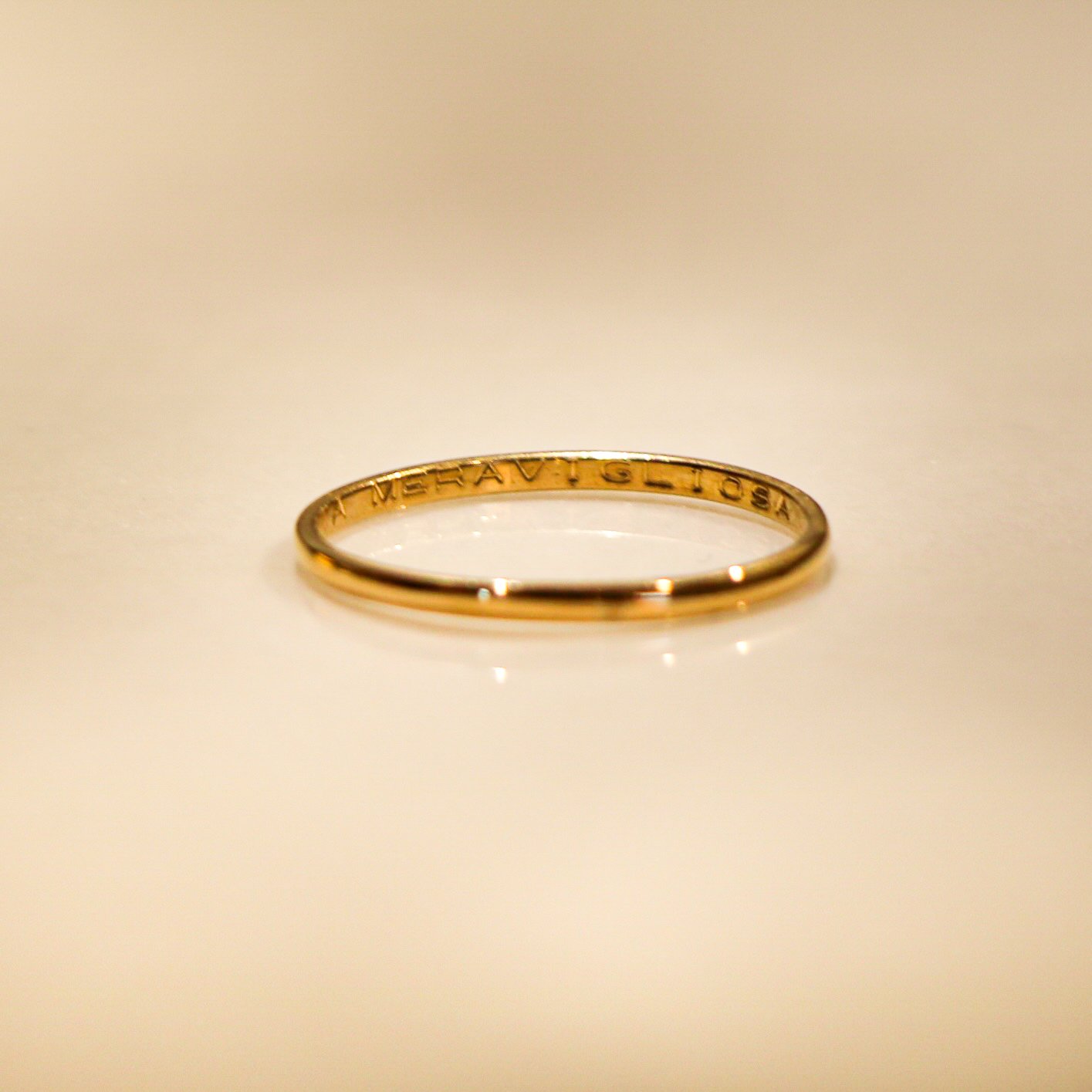 Derrière l’éclat sobre de cet anneau en or se cache un secret, le message : ” A una vita meravigliosa ” ( ” à une vie merveilleuse ” en langue italienne) est gravé, une bonne augure intime. Pensé pour être offert à un proche, cet anneau devient un talisman précieux, porteur d’amour ou d’amitié.